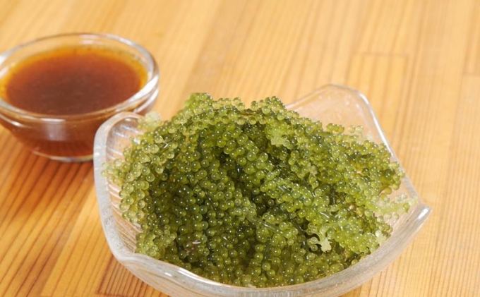 • 「海葡萄」: 沖繩代表性的海藻,翠綠晶瑩的一顆顆小葡萄串,咬下去會在口中迸開,帶著海洋的鹹鮮和獨特口感。簡單沾點橙醋或醬油,就是完美的開胃菜。第一次吃可能會覺得有點腥?習慣後就會愛上那清爽的海洋味!