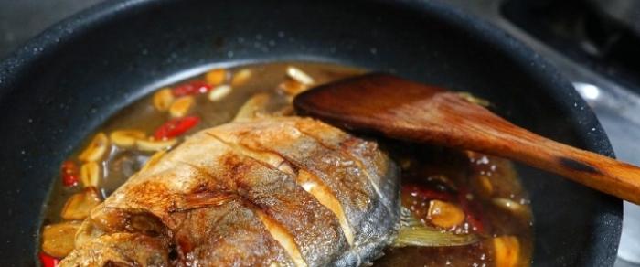 - 融合燒煮: 轉中大火,倒入米酒、醬油、冰糖煮滾。放回煎好的鸚哥魚塊。湯汁滾後轉中小火,蓋上鍋蓋燜煮5-8分鐘讓魚入味。中間可輕晃鍋子。