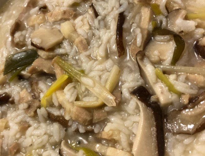 - 隔夜粥重生術! 隔夜的香菇肉粥會變超稠,加點熱水或高湯重新加熱攪拌開,一樣美味。有時候我覺得隔夜更入味!拿來煮鹹粥也很棒。
