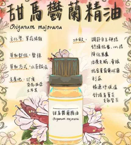 A:絕對不建議! 在臺灣,精油主要定位於「外用」及「薰香」。口服精油風險極高,需要極專業的醫療芳療師處方指導,且必須確認購買的是可以口服的專業治療級精油(這和一般芳療級精油不同),劑量、載體(如蜂蜜、植物油)和服用方式都需嚴格把控。自行口服可能灼傷食道、黏膜,或導致嚴重副作用(如肝腎負擔、藥物互動作用)。切勿輕易嘗試口服任何精油! 想透過馬鬱蘭精油功效調理腸胃,用稀釋按摩腹部或嗅吸就足夠安全有效了。